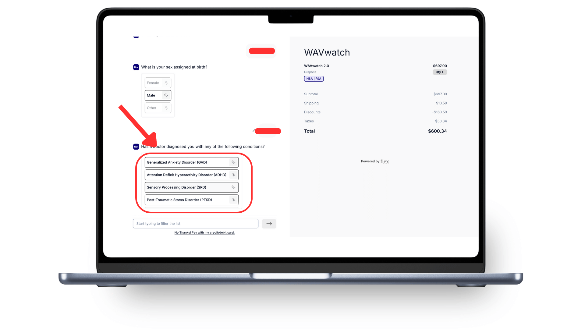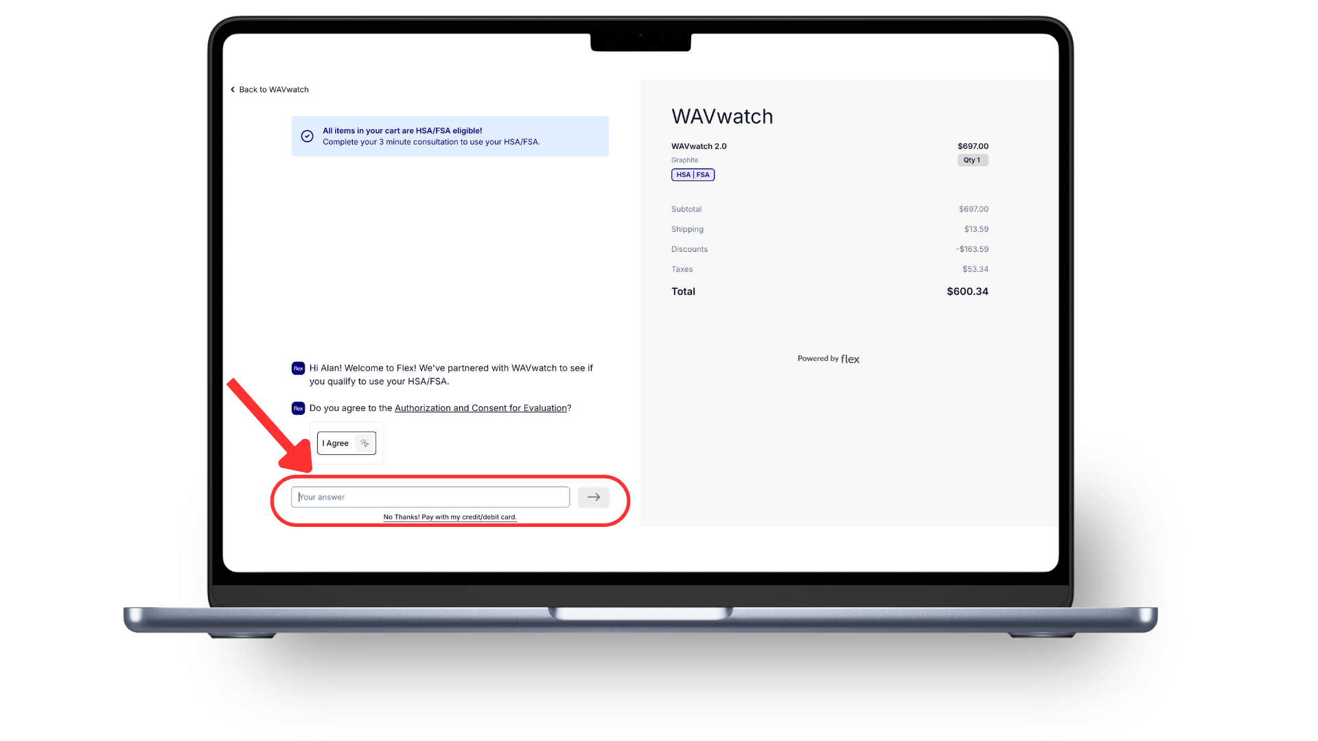 Flex has partnered with WAVwatch to enable consumers to use their HSA/FSA funds. You can think of Flex as an alternative to payment method, similar to Affirm, Klarna etc.